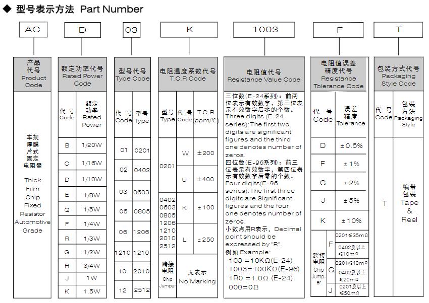 風(fēng)華車規(guī)厚膜片式固定電阻器型號(hào)命名規(guī)則: