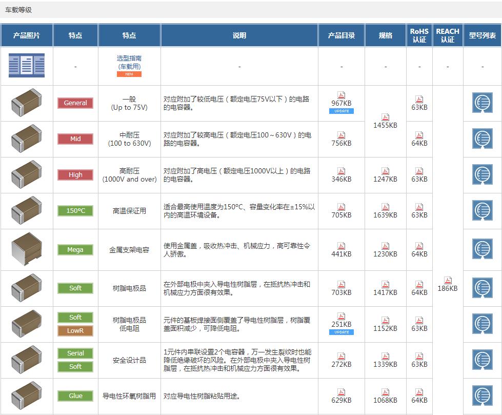 TDK車(chē)規(guī)電容一般 (Up to 75V):