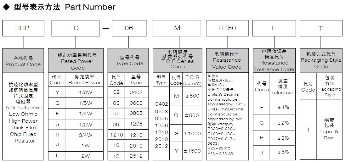 風華高科抗硫化功率型超低阻值厚膜片式固定電阻器型號命名規(guī)則: