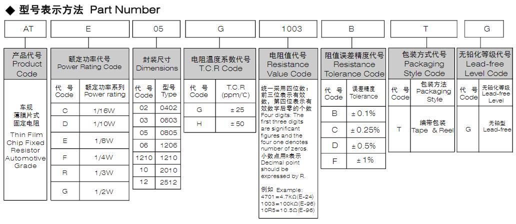 風(fēng)華高科車規(guī)薄膜片式固定電阻器型號命名規(guī)則: