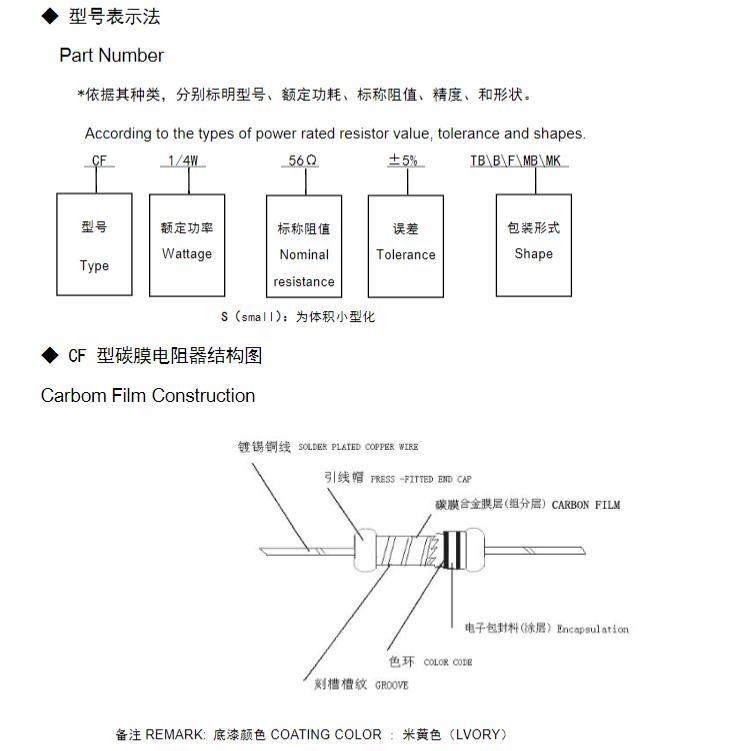 風華碳膜電阻器命名規則: