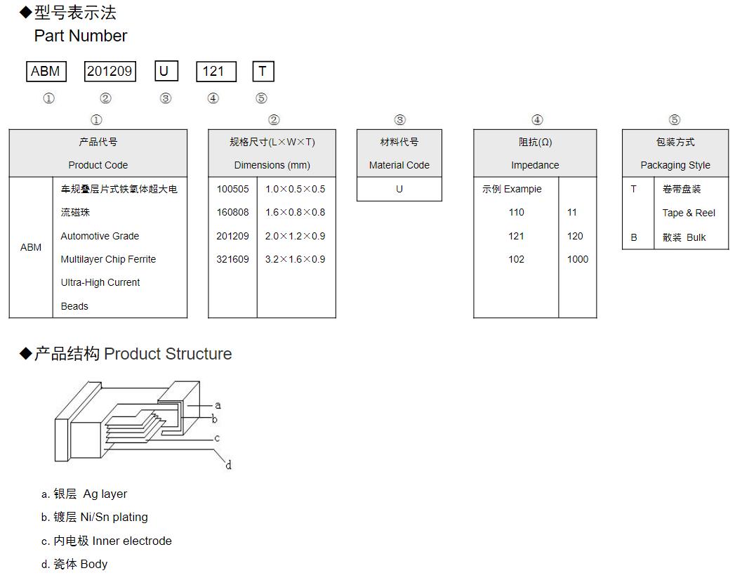 風華高科車規(guī)疊層片式鐵氧體超大電流磁珠命名規(guī)則: