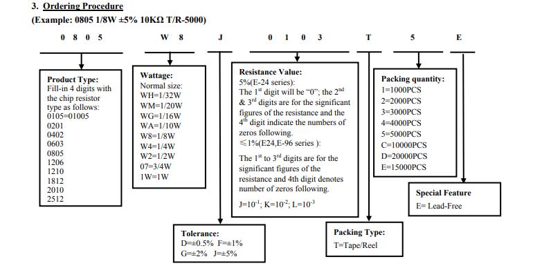 厚聲電阻命名規(guī)則對照表: