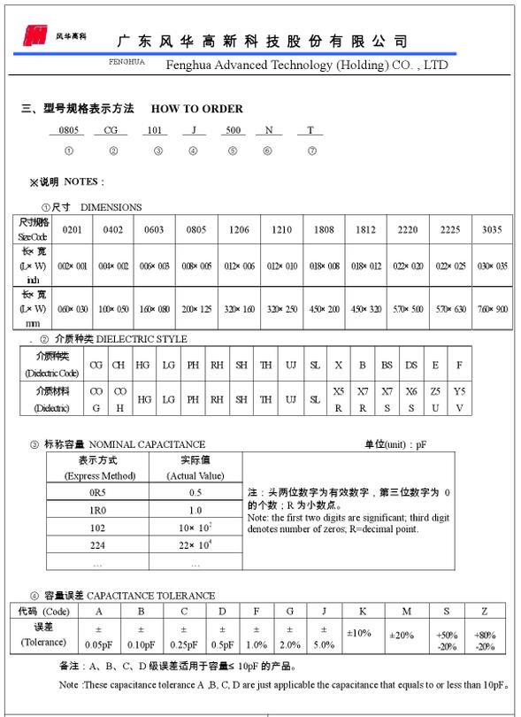 風(fēng)華電容型號(hào)識(shí)別: