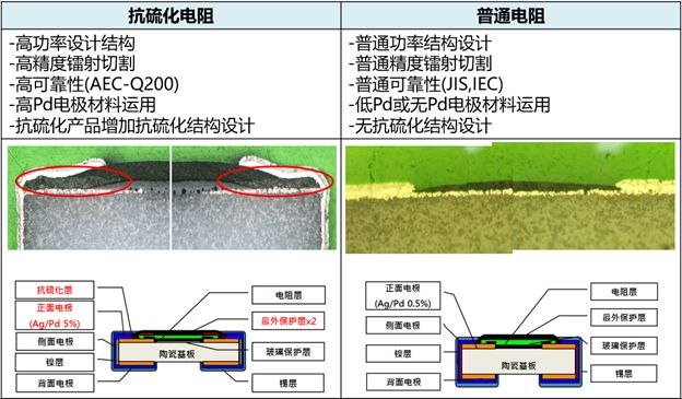 2、抗硫化電阻和普通電阻設(shè)計上的區(qū)別
