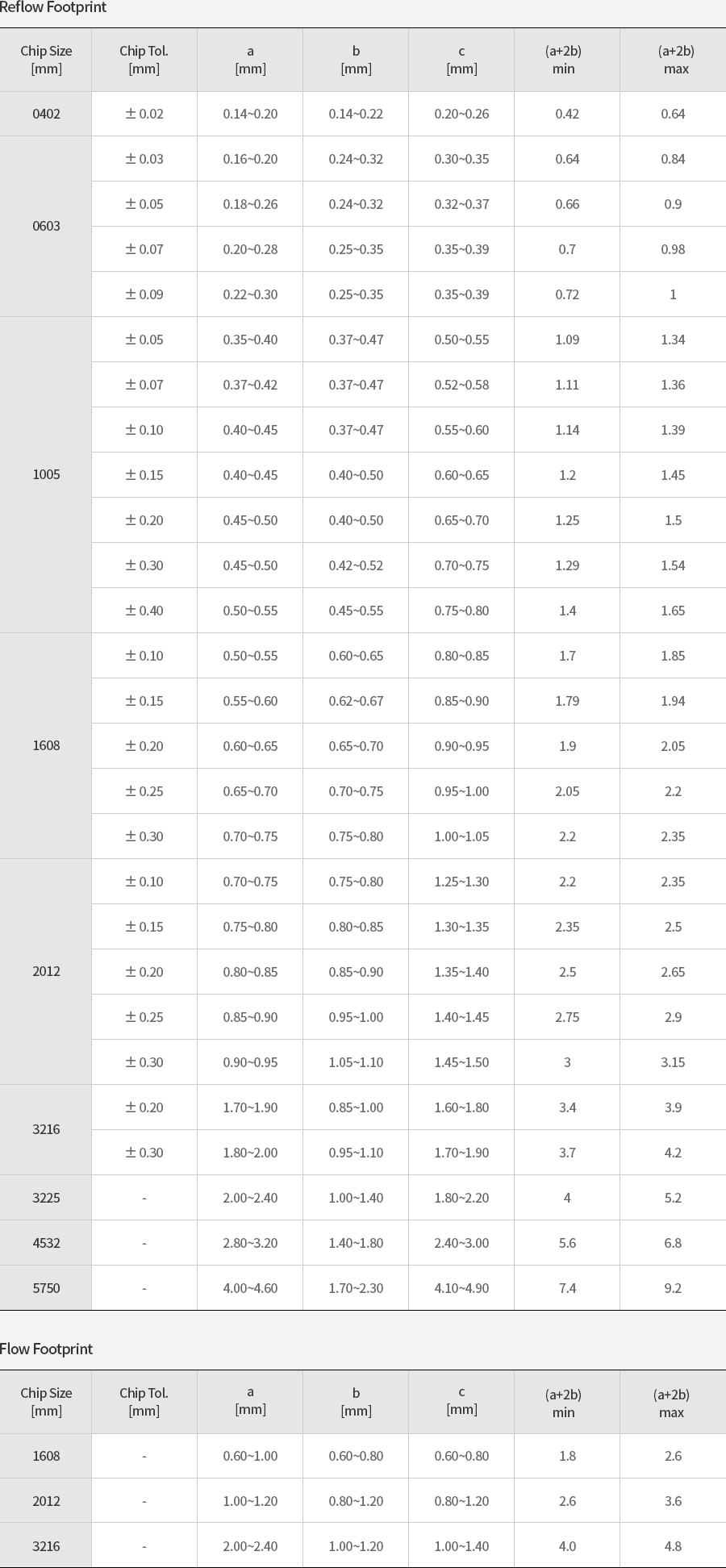 三星電機通過實裝測試,在Spec sheet中標明了 MLCC 推薦實裝面積。