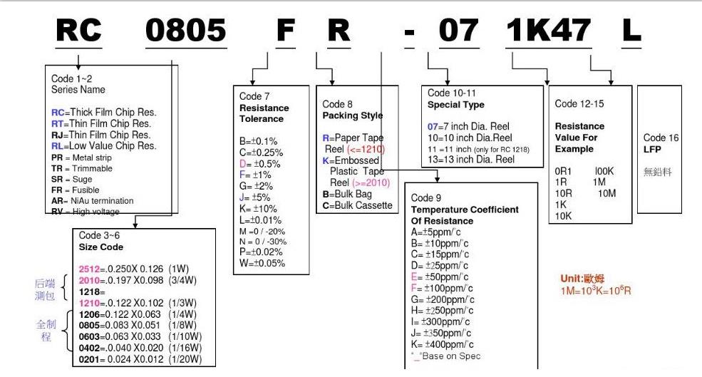 國巨貼片電阻命名規則對照表